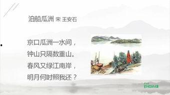 想象你正站在一艘古色古香的船上,微风拂面,江水潺潺。眼前是一片宽阔的江面,远处是连绵起伏的青山,近处是郁郁葱葱的绿树。这样的画面,是不是让你想起了那首脍炙人口的古诗——“泊船瓜洲”?
